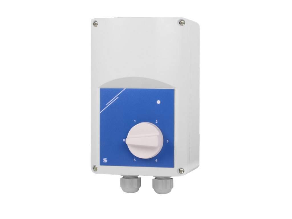Pětistupňový transformátorový regulátor otáček pro ventilátory s napájecím napětím 230 V. Otáčky ventilátoru se regulují změnou výstupního napětí pomocí přepínače na přední straně transformátoru. Je nastavitelný pro řízení výkonu všech ventilátorů na střídavý proud 1~. Čtyři sekundární napětí v odstupňování ventilátorů 5 výkonnostních stupňů 110/140/170/200 a 230 V (plné síťové napětí). Na jeden řídící přístroj může být napojeno více, i různých, ventilátorů až po hodnotu zatížení jmenovitého proudu.