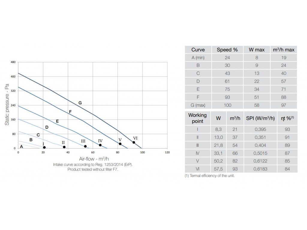 Jednotka je vysoce výkonná. Lze ji využít i do prostor velkých až 75 m2. O plynulé odvětrávání prostoru se starají EC motory, jež se nachází ve vnitřku jednotky