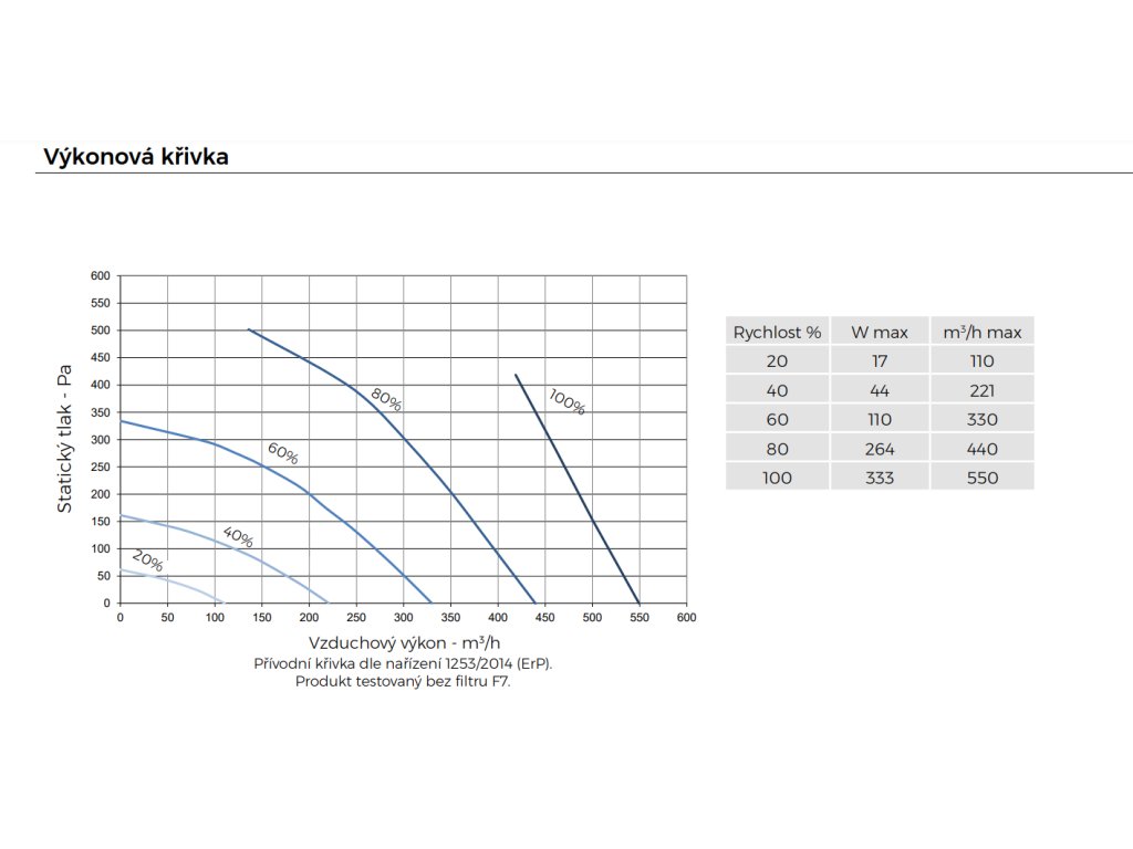 Maximální průtok při 100 Pa (m3/h): | 520 |
