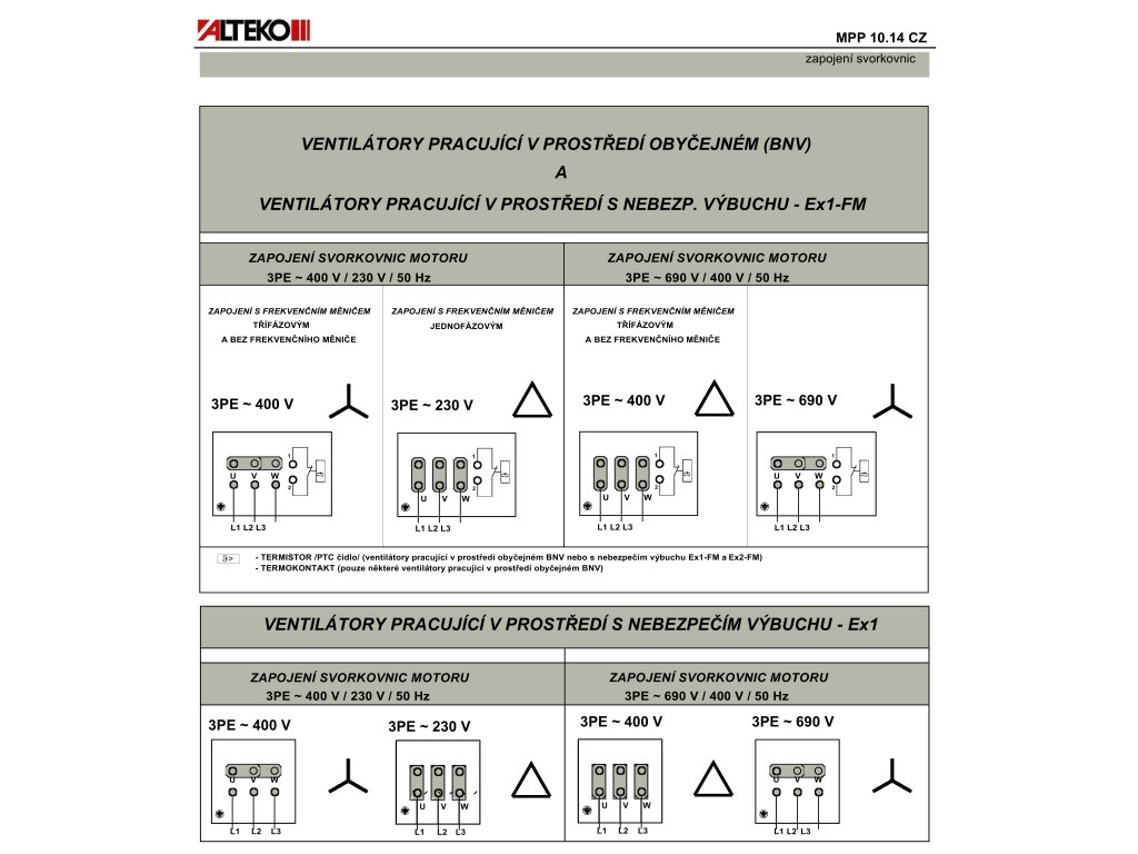 - Motorová ochrana - PTC (může být nahrazen termokontaktem, vyjímečně bez ochrany)