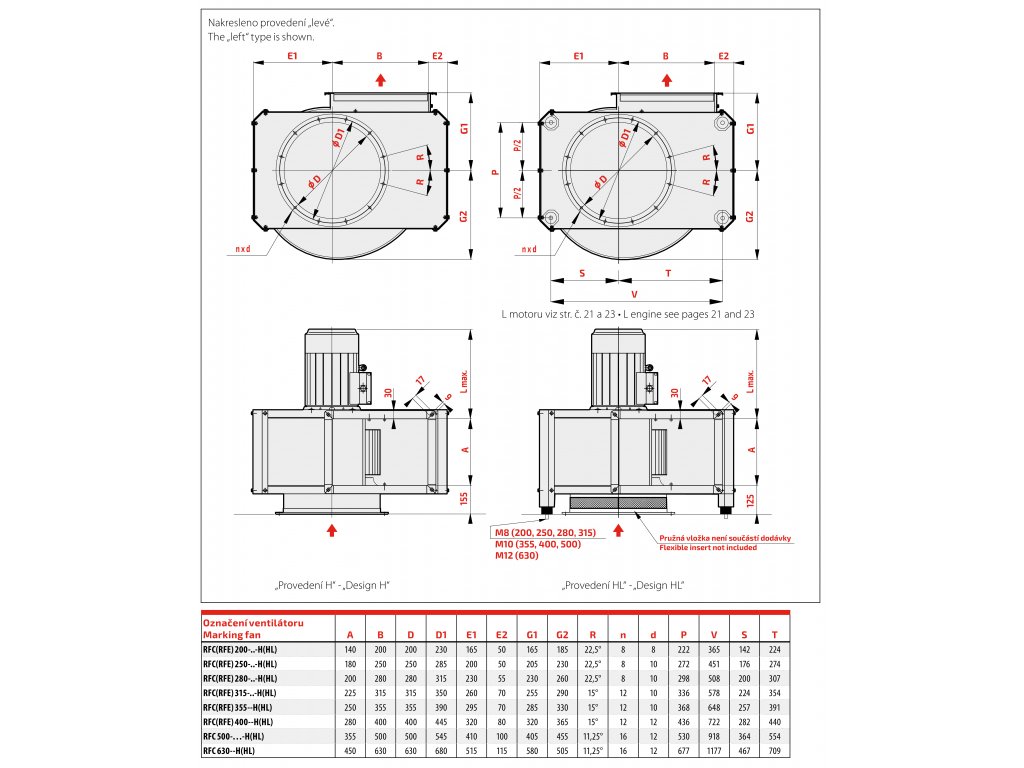 Ventilátory řad HL mají vyztuženou konstrukci spirální skříně a umožňují montáž v poloze se svislou osou rotace oběžného kola. Provedení HL je určeno pro aplikace s horizontálním umístěním ventilátoru. U tohoto provedení se celková hmotnost ventilátoru přenáší na nožičky s pryžovými pružinami. Ventilátory HL nacházejí uplatnění především při montáži na střechy stříkacích a mnoha dalších pracovních boxů.
