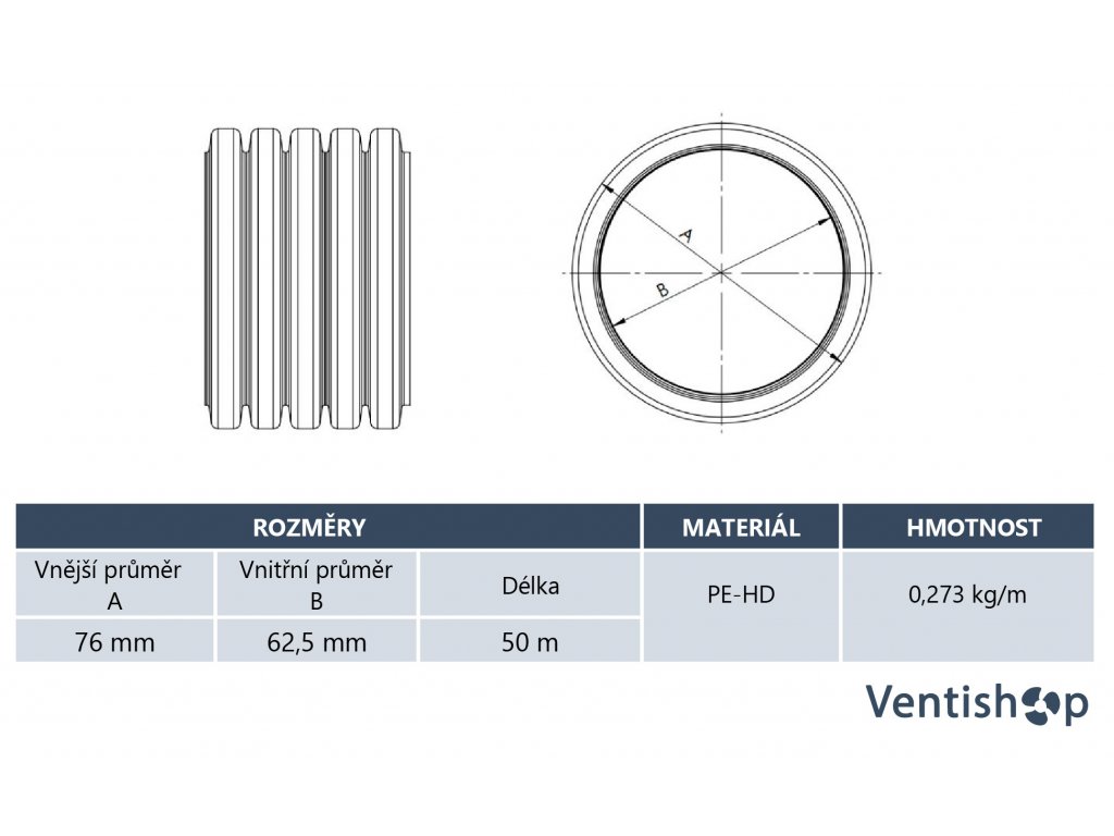 Vnější průměr A: | 76 mm |
