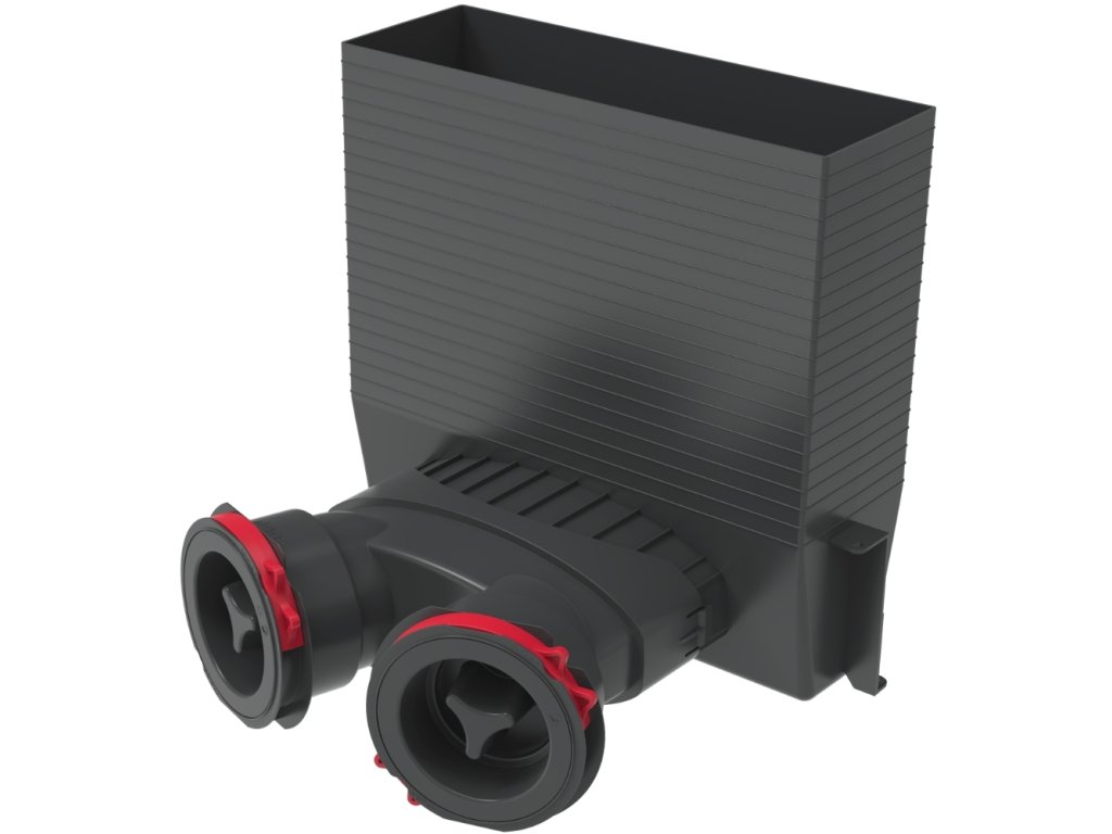 Hrdla s těsněním a kroužky v technologii OneClick® (2x90 mm v základní konfiguraci) umožňující rychlou a pohodlnou instalaci větracích trubek