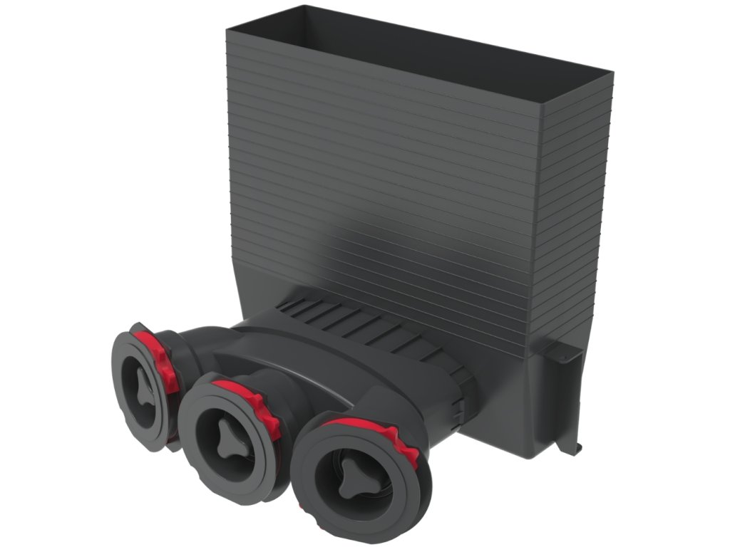 Hrdla s těsněním a kroužky v technologii OneClick® (3x75 mm v základní konfiguraci) umožňující rychlou a pohodlnou instalaci větracích trubek