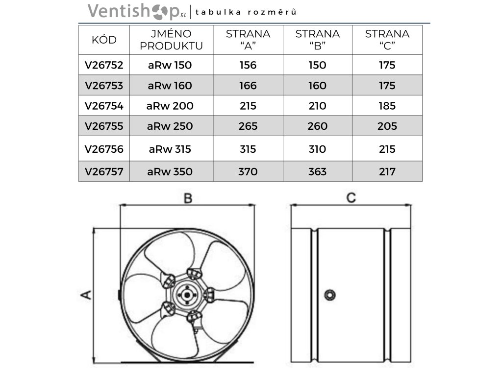 aRw 350 nízkotlaký axiální potrubní ventilátor s pozinkováním