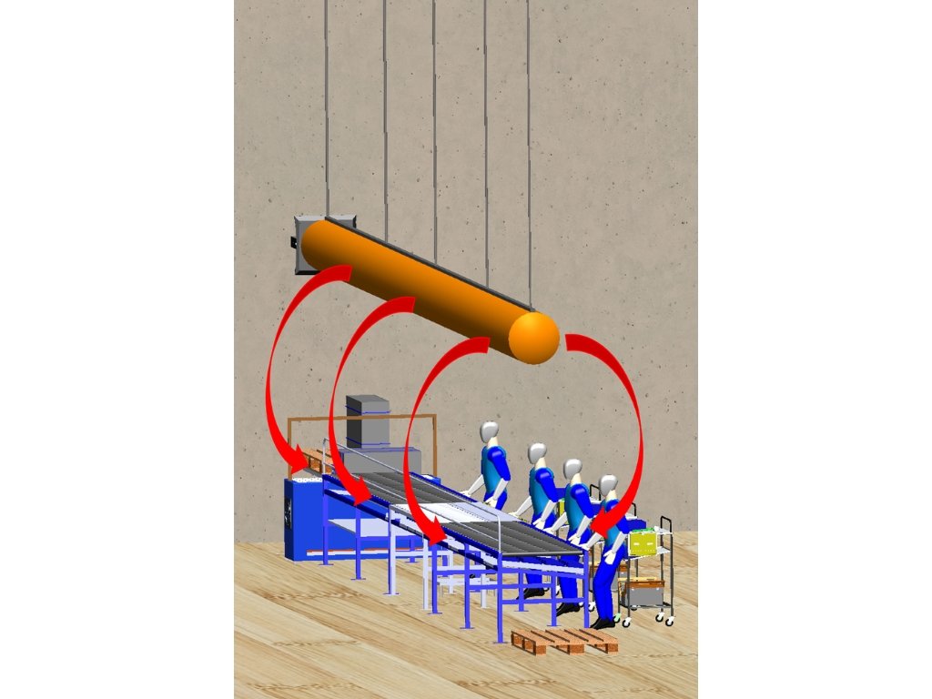 Atacama Sleeve větrá prostor zaplavováním, tedy teplý vzduch je vyfukován malými otvory v textilní vyústce a jeho masa je směrována dolů do oblasti pobytu osob typickou rychlostí cca 0,3m/s.