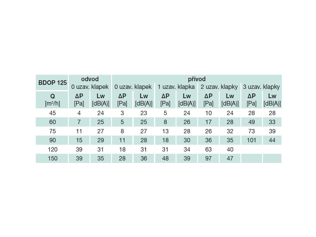 Univerzální plastové anemostaty pro přívod a odvod vzduchu mají snadno nastavitelné regulační listy pro regulaci průtoku a směru proudu vzduchu. Ventily o velikosti 80, 100 a 125 jsou dodávány s vložkou pro snadnou instalaci do SDK podhledu. Plastové ventily je možné čistit slabými roztoky neagresivních saponátů. Ventily BDOP jsou vyrobeny z polypropylenu, barva bílá v odstínu RAL 9003.