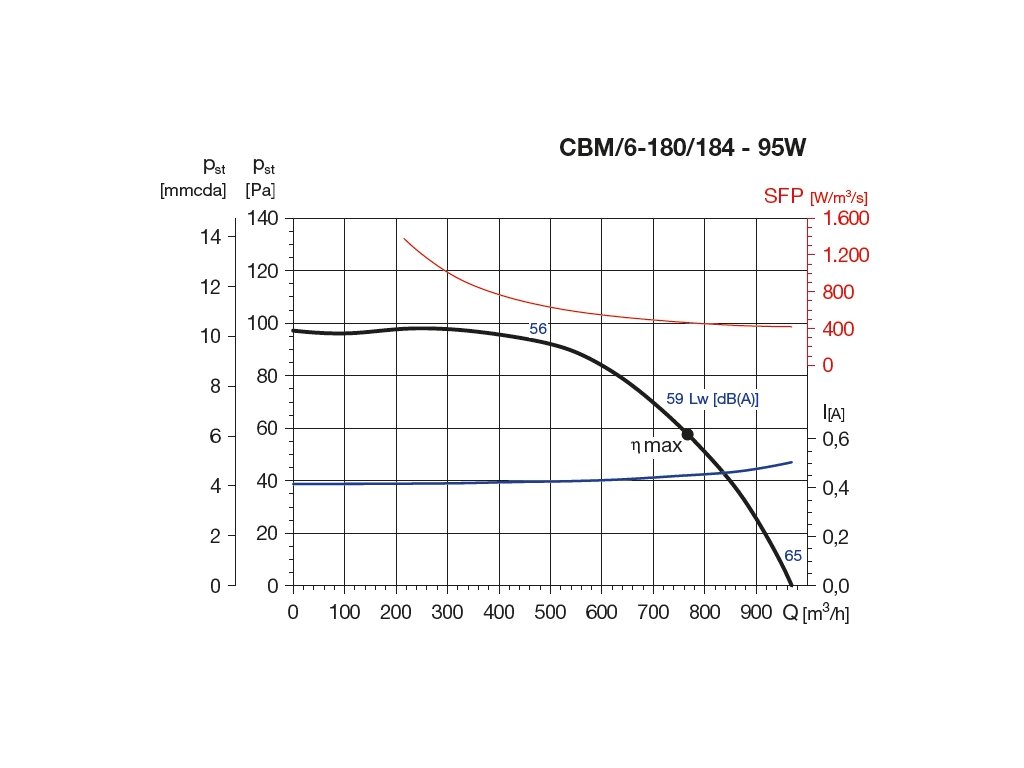 | Průtok (0 Pa) (m3/h): | 970 |
