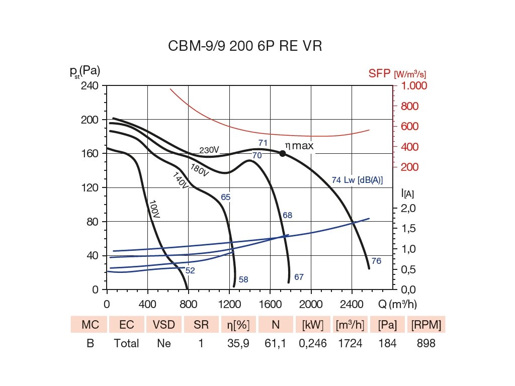 Soler & Palau CBM-9/9 200W 6P RE VR radiální ventilátor