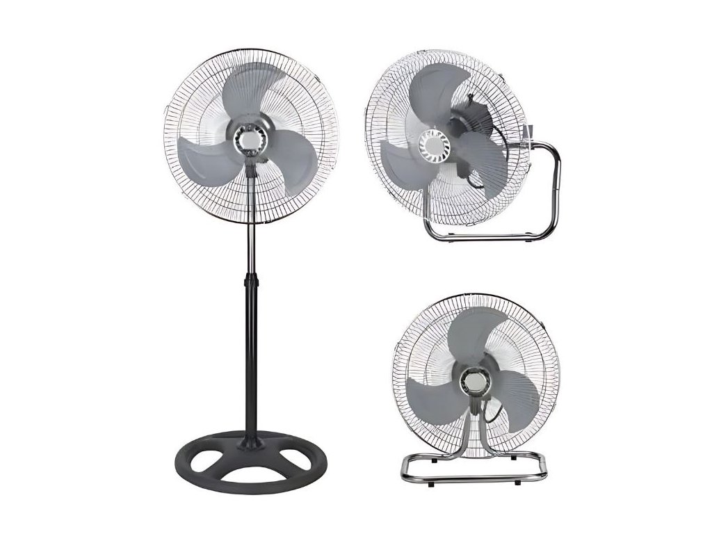 - základna: kruhová u využití stojanu, kovová při užití jako podlahový nebo nástěnný ventilátor