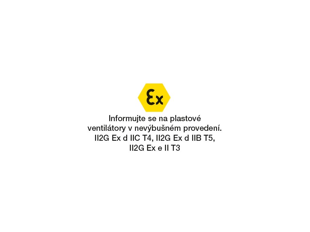 Spirální skříň radiálního ventilátoru je vyrobena z polypropylenu, max. teplota dopravované vzdušiny 60 °C. Ventilátor je dodávan s orientací skříně LG 0 a při montáži lze úhel osy výtlačného hrdla změnit. PVC provedení na zvláštní objednávku.