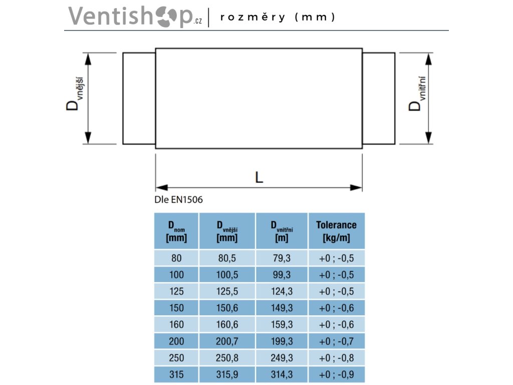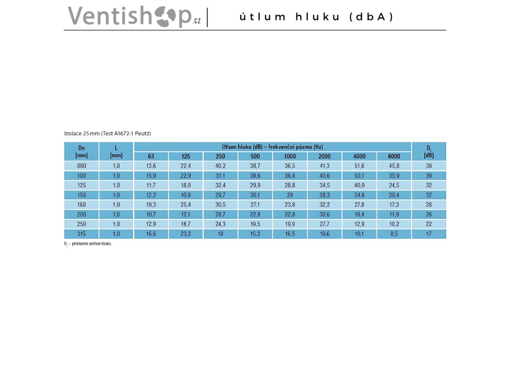 Vícevrstvá konstrukce s 25mm izolací zajišťuje útlum hluku až v rozmezí 20 až 39 db(A)dB (v závislosti na užitém průměru).