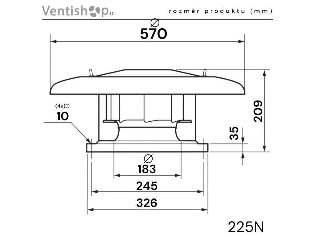 Jednofázový střešní ventilátor pro odtah horkého vzduchu italského výrobce Vortice Torrette TRM 10 ED 4P s horizontálním výfukem vhodný pro montáž na střechy obytných,...