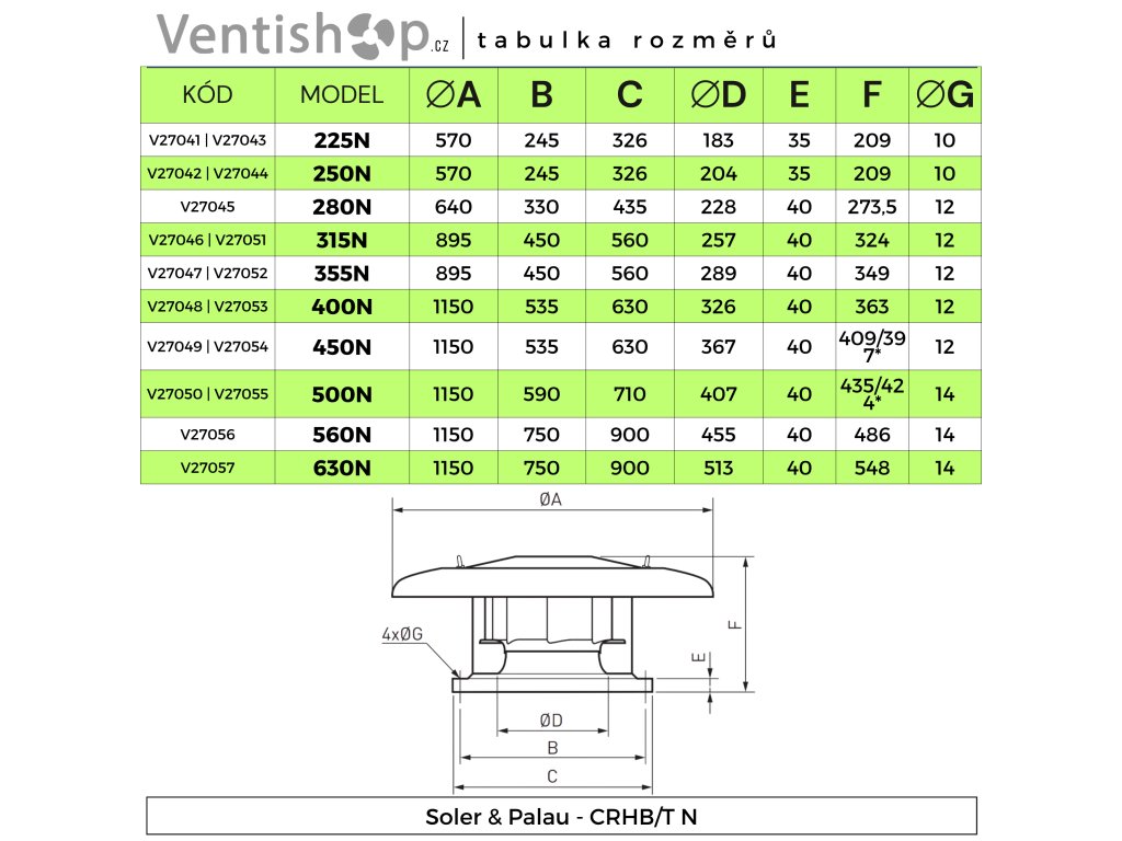 Střešní ventilátor - Soler & Palau, ⌀ 407 mm (průměr otvoru), horizontální výfuk, minimální potřeba údržby, možnost regulace krytí IP 54, průtok vzduchu 8770 m3/h, 1410 otáček za minutu, (-40/+40) užitelné teplotní rozmezí, hmotnost 60 kg