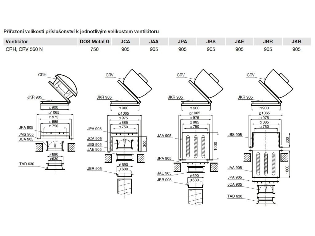 zpětná klapka s přípravou na servopohon (např. BELIMO) pro střešní ventilátory TH, CRV, CRH a HCT vyrobena z ocelového pozinkovaného plechu servopohon není součástí dodávky