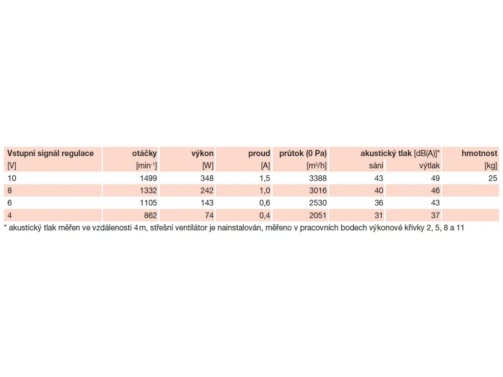 Hluk emitovaný ventilátorem je uveden v tabulkách. Hodnoty jsou měřeny ve vzdálenosti 4 m na straně výtlaku v horizontálním směru.