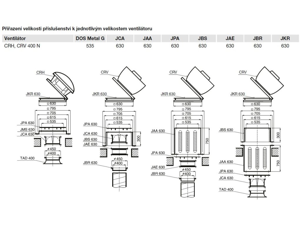 zpětná klapka s přípravou na servopohon (např. BELIMO) pro střešní ventilátory TH, CRV, CRH a HCT vyrobena z ocelového pozinkovaného plechu servopohon není součástí dodávky