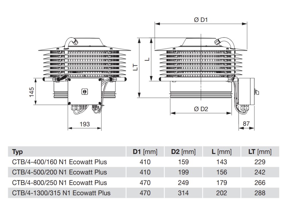 CTB/4-1300/315 N1 Ecowatt Plus IP44 střešní ventilátor