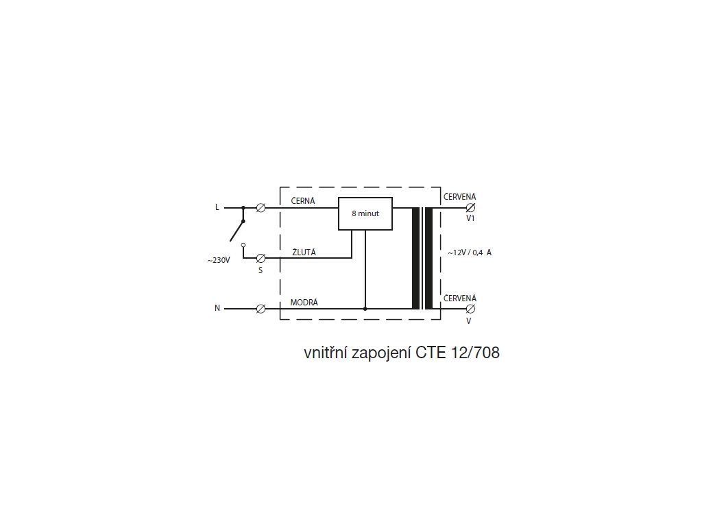 CTE 12/708 transformátor 230/12 V s časovým doběhem