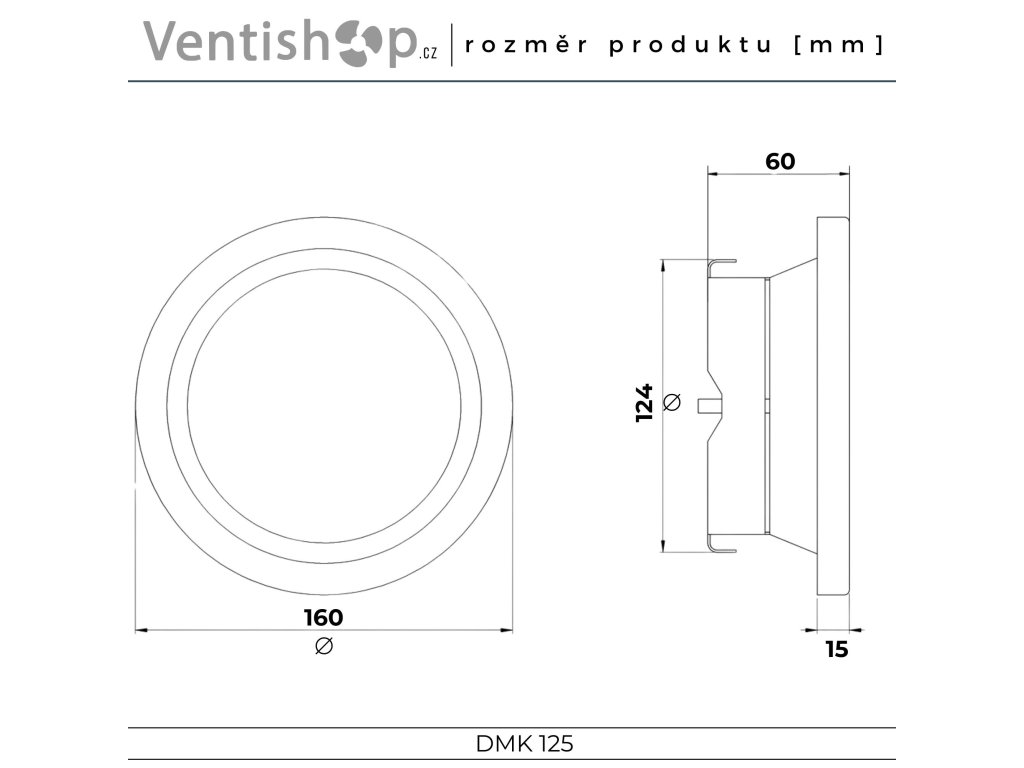 Kovový anemostat (talířový ventil, difuzor) - ⌀ 125 mm (průměr), barva bílá (jako RAL 9016), univerzální (přívodní i odvodní), ocel potažená polymerem, ruční regulace průtoku,...