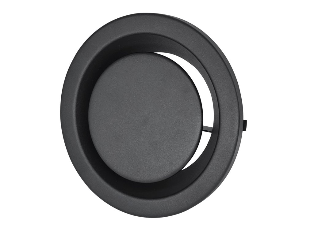 Kovový anemostat (talířový ventil, difuzor) - ⌀ 125 mm (průměr), barva černá, odvodní, ocel potažená polymerem, na stěnu / strop, kruhový, regulace průtoku, rozměry 165 × 165 mm...