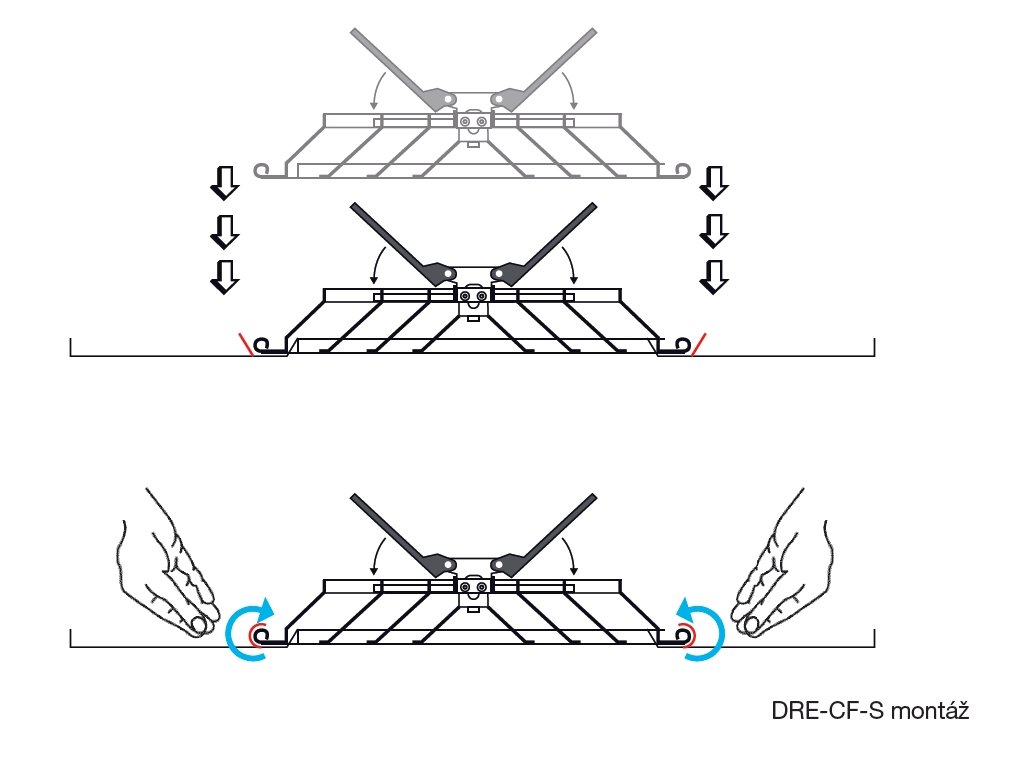pomocí skrytých šroubů na hrdle anemostaty nebo pomocí montážní konzole.