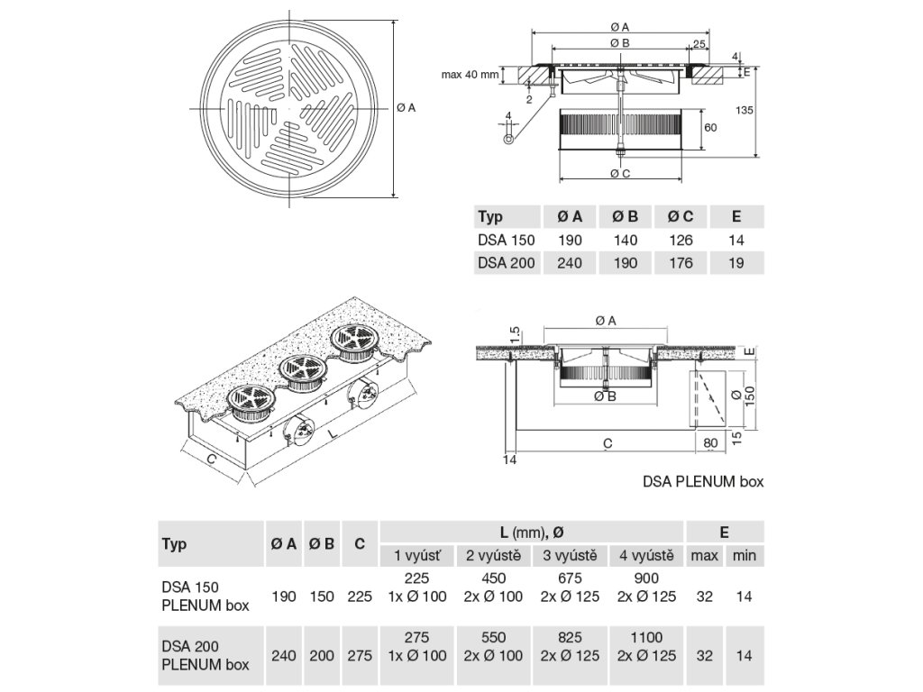DSA-150-PLENUM box pro podlahovou výusť DSA