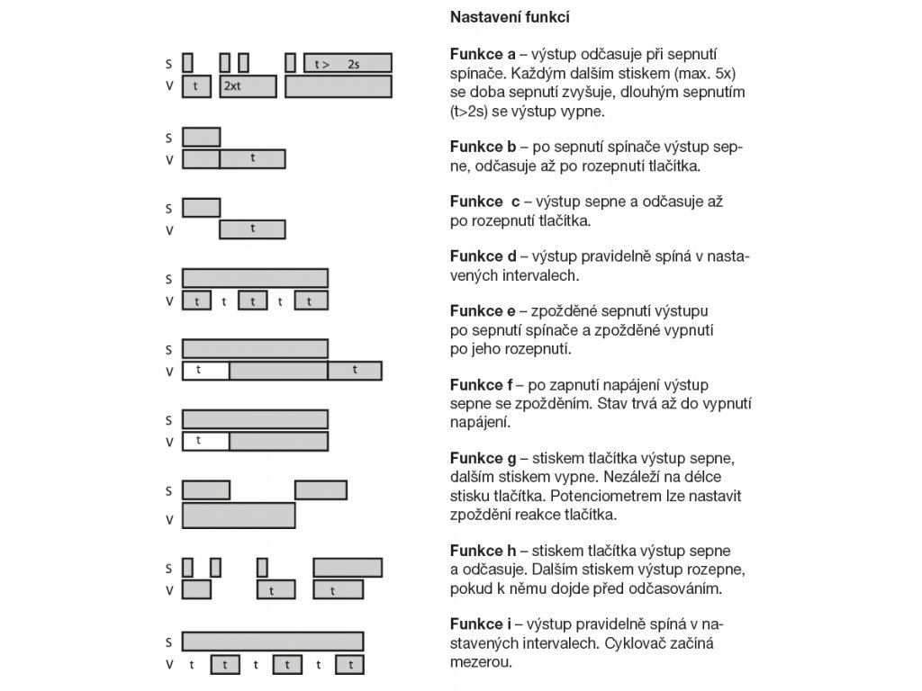 Nastavení zpoždění rozběhu (doběhu), cyklického spínání ventilátorů v sociálních zařízeních. Lze použít ke zpoždění vypnutí ventilátoru při vychlazování elektrických ohřívačů, k blokování kontaktů snímačů tlaku (sledování provozu ventilátorů) při rozběhu a doběhu.