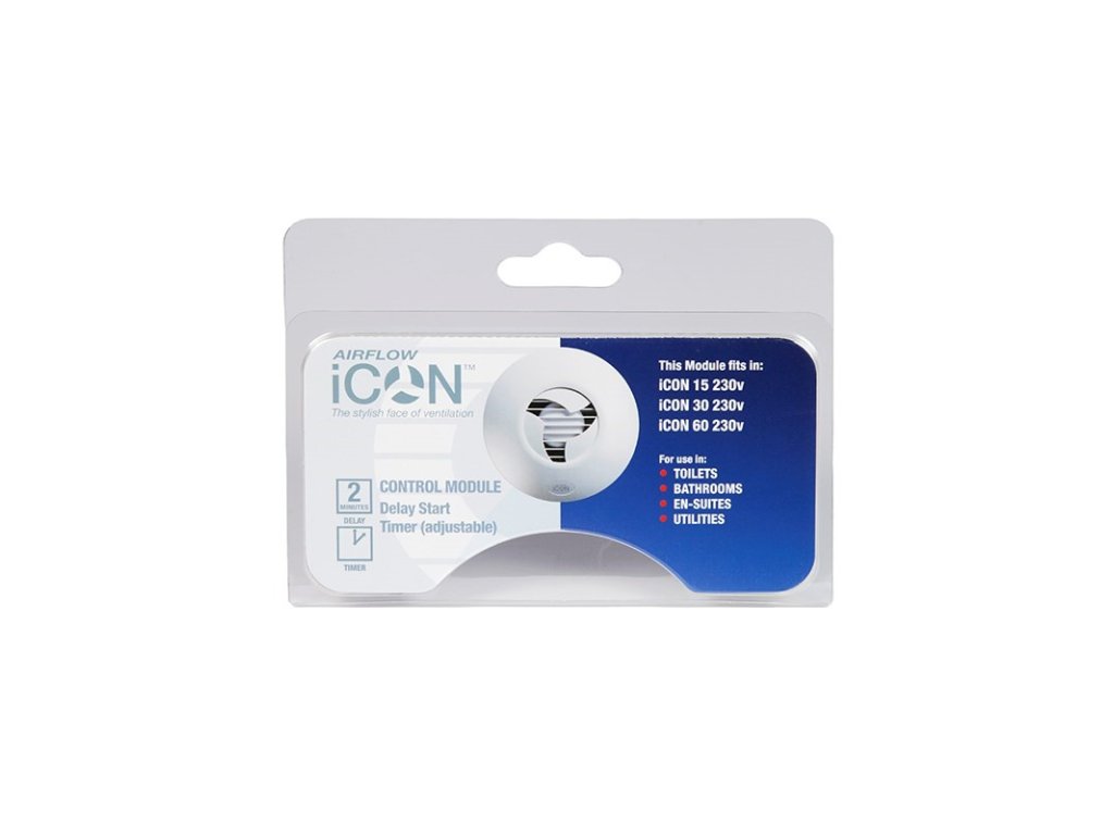 Ovládací modul k ventilátorům iCON - časový náběh (2 min.) + doběh (2 až 40 min.) + tahový on/off vypínač, snadná instalace, k iCON 15, 30 i 60, pouze pro 230 V, rozměry ~ 225 × 144 mm (Š×V), hmotnost ~ 0,3 kg