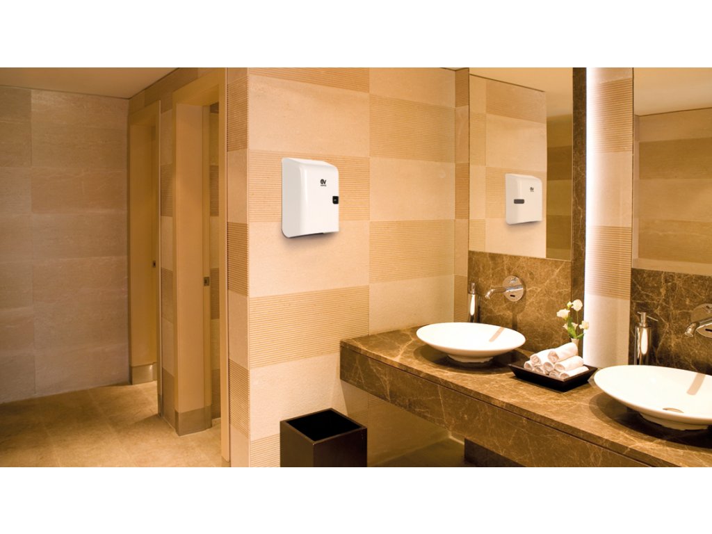 Nástěnný osoušeč vlasů nebo rukou Vortice Easy Dry Auto pro silně frekventované provozy i domácnosti. Barva bílá.