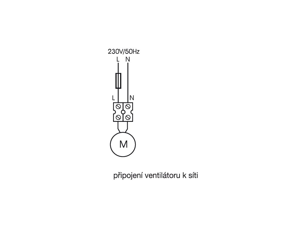 Svorkovnice je přístupná po sejmutí čelní mřížky a víka svorkovnice, připojení pod omítkou nebo kabelem na omítce. Svorkovnice obsahuje odlehčovací sponu proti vytržení kabelu.