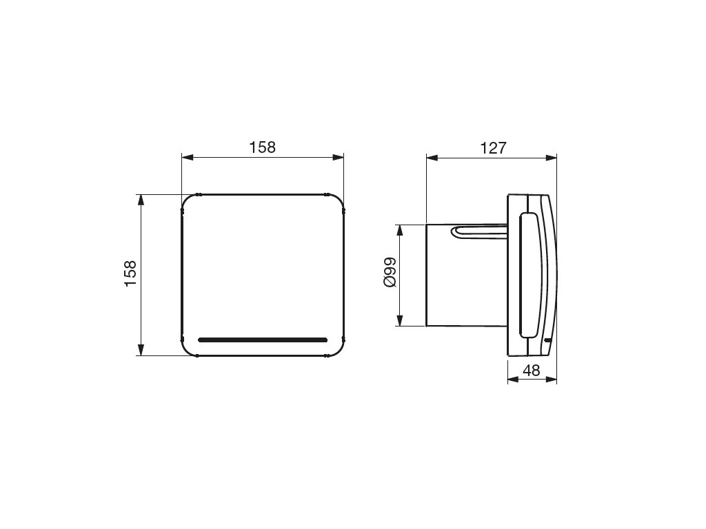 Skříň je z ABS, barva bílá. Výtlak je směrem dozadu, průměr výtlačného hrdla je 99 mm. Montáž je na stěnu nebo do podhledu.