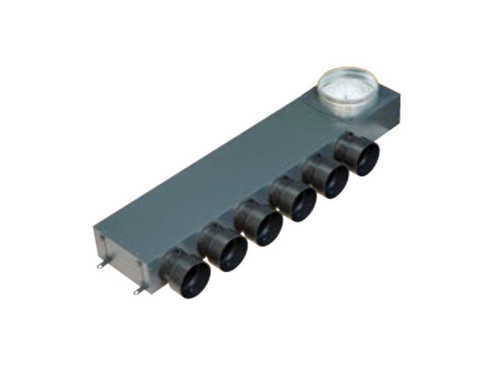 - 6 plastových hrdel o Ø 75/90 mm s těsněním a regulační klapkou s vnější aretací