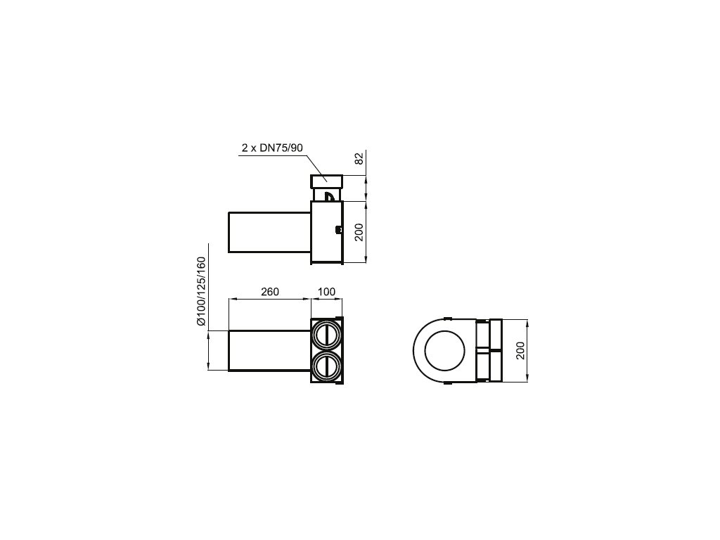 - 2 plastová hrdla o Ø 75/90 mm s těsněním a regulační klapkou s vnitřní aretací