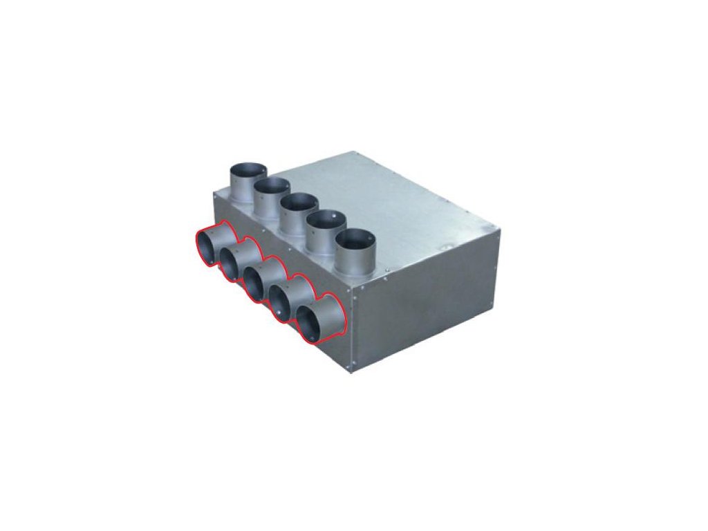 univerzální rozváděcí box umožňuje namontovat řadu hrdel DN 75 na stěnu nebo na čelo