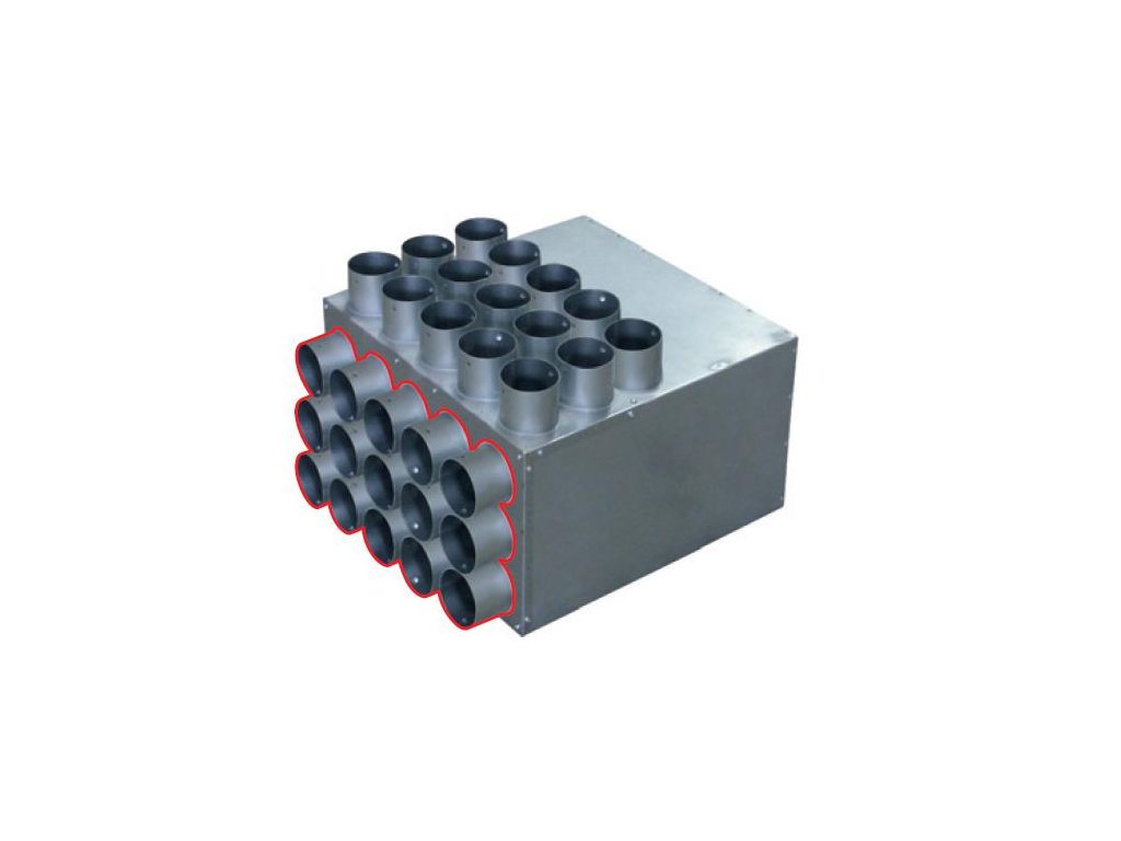 univerzální rozváděcí box umožňuje namontovat řadu hrdel DN 75 na stěnu nebo na čelo