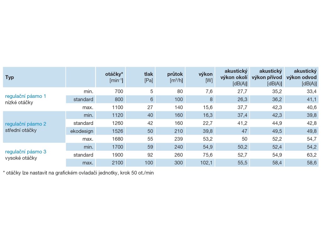 Jednotka obsahuje dvojitý radiální ventilátor s dozadu zahnutými lopatkami s EC motorem.