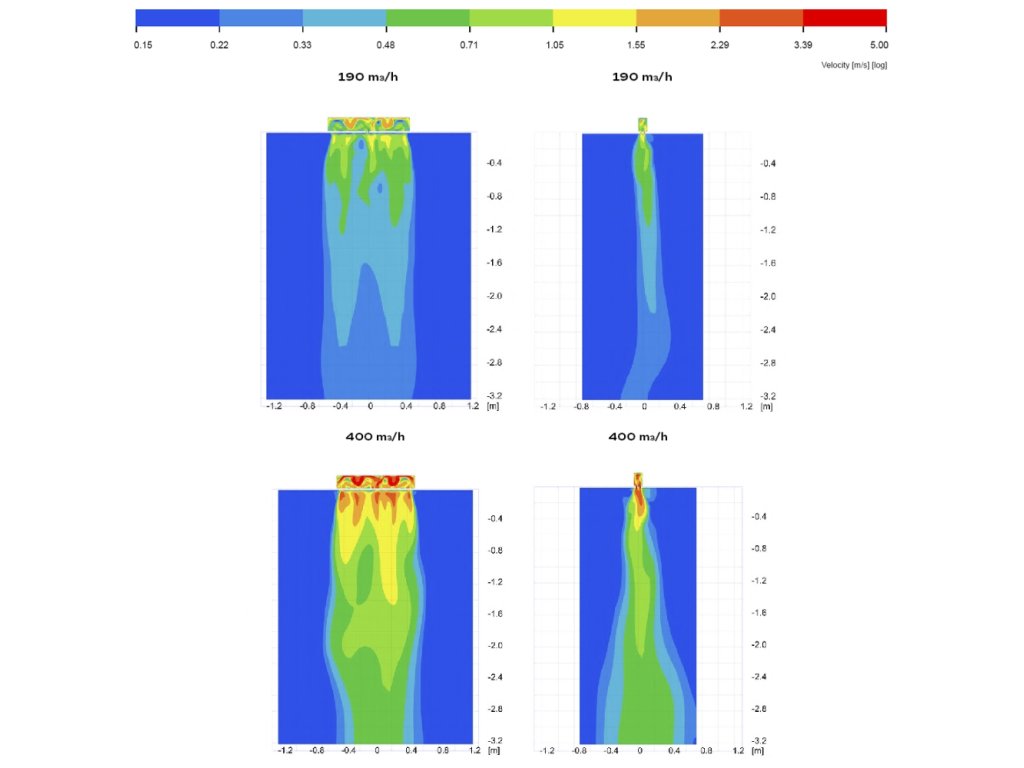- Výjimečně příznivé hodnoty průtoku i akustického tlaku