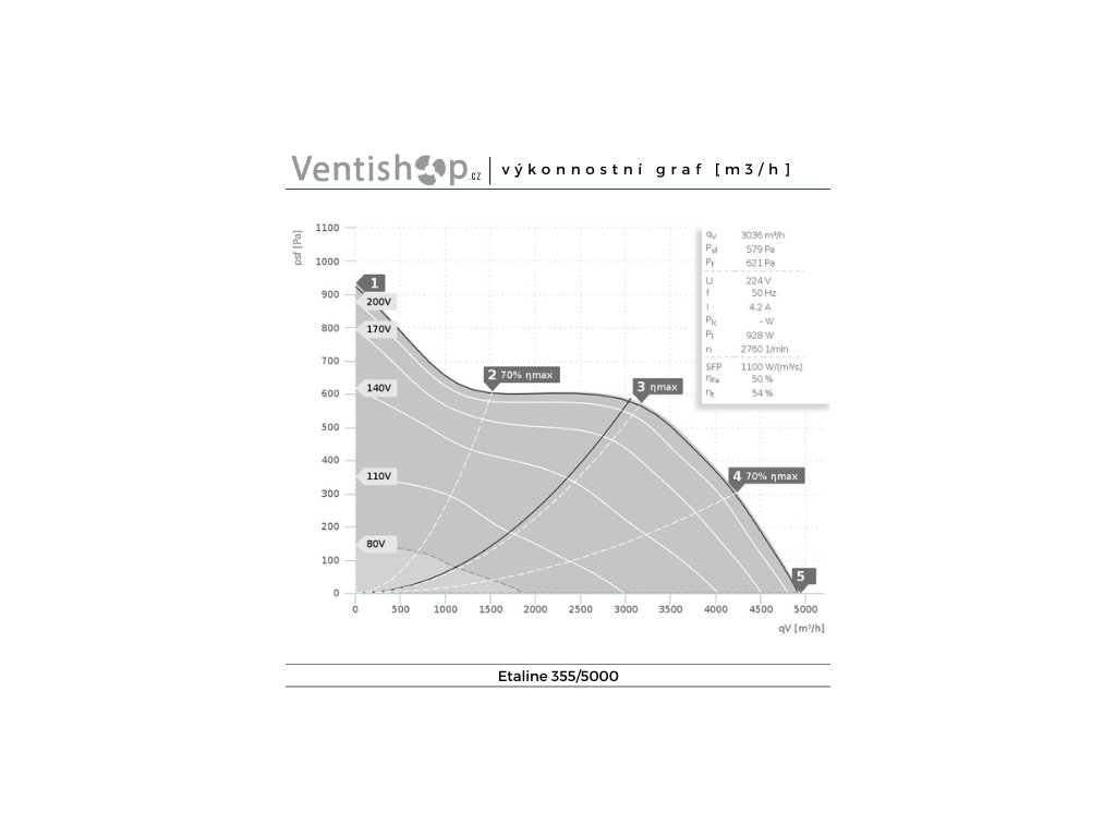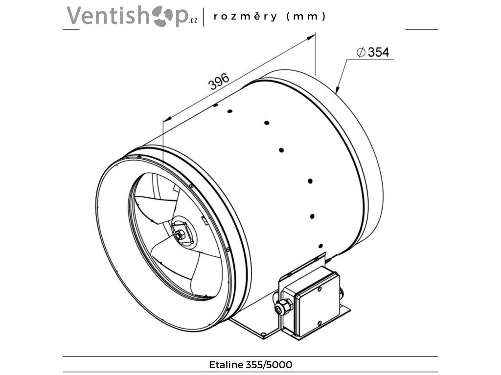 Etaline 355/5000 - výkonný diagonální potrubní ventilátor