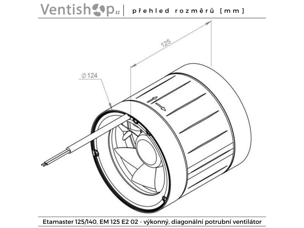 Etamaster 125/140 - výkonný, diagonální potrubní ventilátor