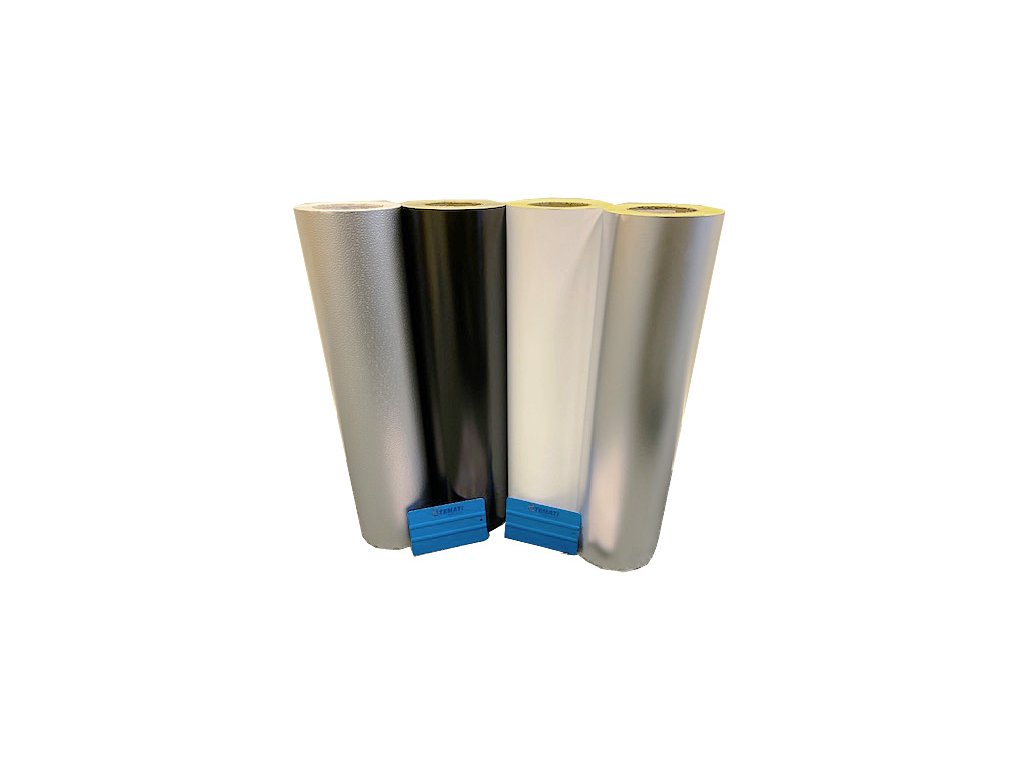 Flexibilní parotěsná stříbrná-embosovaná samolepící fólie, navržená jako povrchová úprava a parozábrana izolačních materiálů pro vnitřní i venkovní použití. Vícevrstvý materiál s celkem 5-ti vrstvami hliníkových a polymer laminátových fólií s agresivně přilnavým lepidlem. Tloušťka fólie 0,12mm.