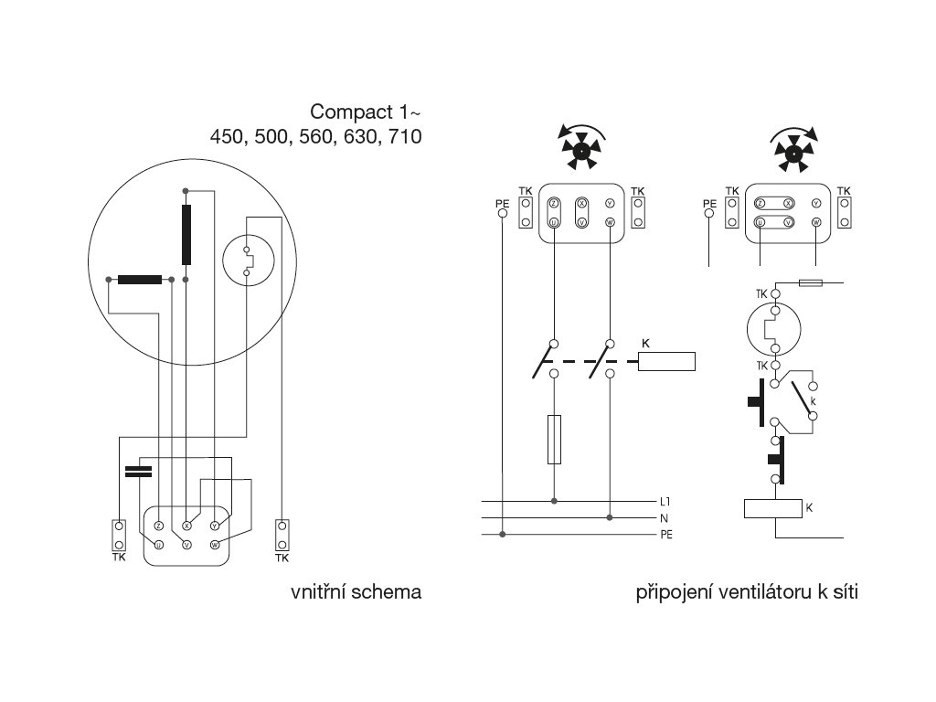 Směr otáčení je možno měnit. Se standardním oběžným kolem klesne při opačném směru otáčení průtok o cca 30%. Průtok vzdušiny je standardně od motoru k oběžnému kolu.