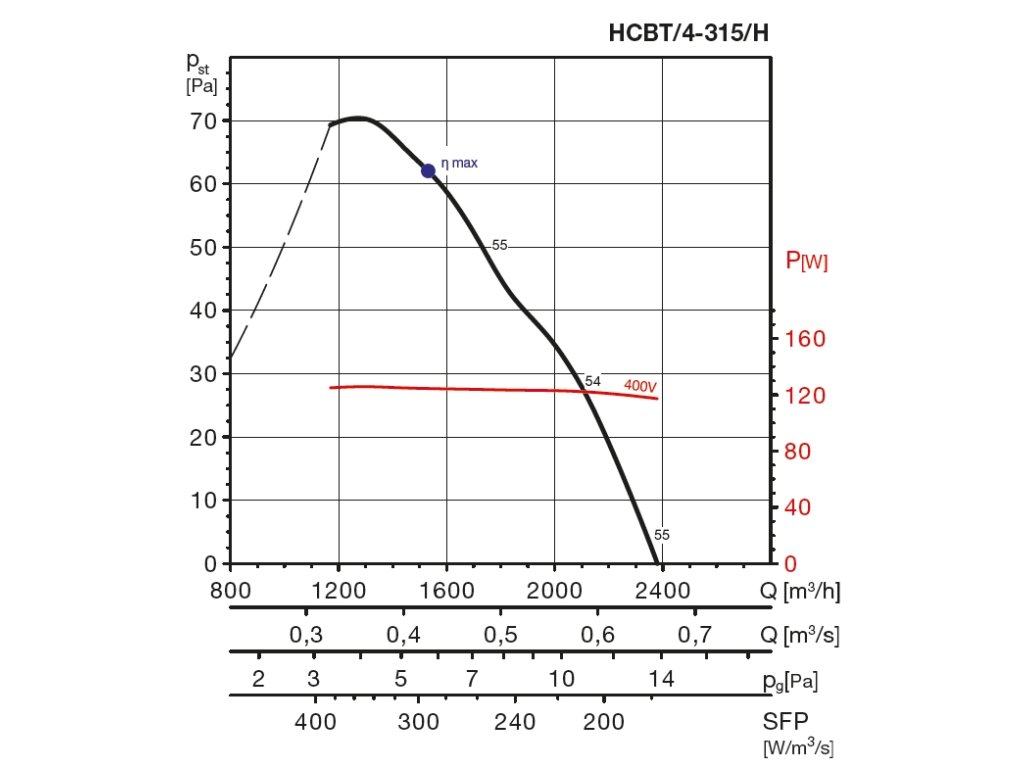 Oběžné kolo je vyrobeno ze slitiny Al. Oběžné kolo je staticky a dynamicky vyváženo, rozsah pracovních teplot je v rozmezí od -20° do +55 °C (velikosti 315–710 kromě TCBT/4-710) nebo od -20° do +40 °C (velikost 800–1000 a TCBT/4-710).