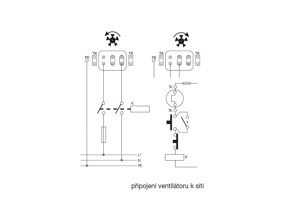 Svorkovnice je z černého plastu, jednofázového provedení má rozběhový kondenzátor. Svorkovnice je umístěna na motoru.