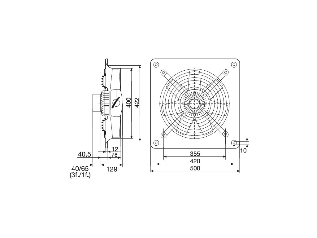 Směr otáčení je možno měnit u jednofázových i třífázových motorů. Se standardním oběžným kolem klesne při opačném smyslu otáčení průtok o cca 30%. U nástěnného provedení je standardně průtok vzdušiny od motoru k oběžnému kolu.