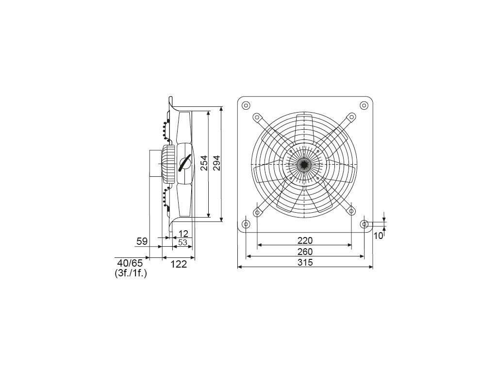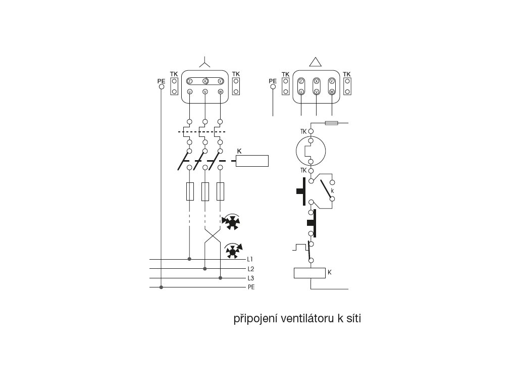 Montáž ventilátoru v každé poloze osy motoru. Skříň nesmí přenášet mechanické namáhání ze stavebních konstrukcí.