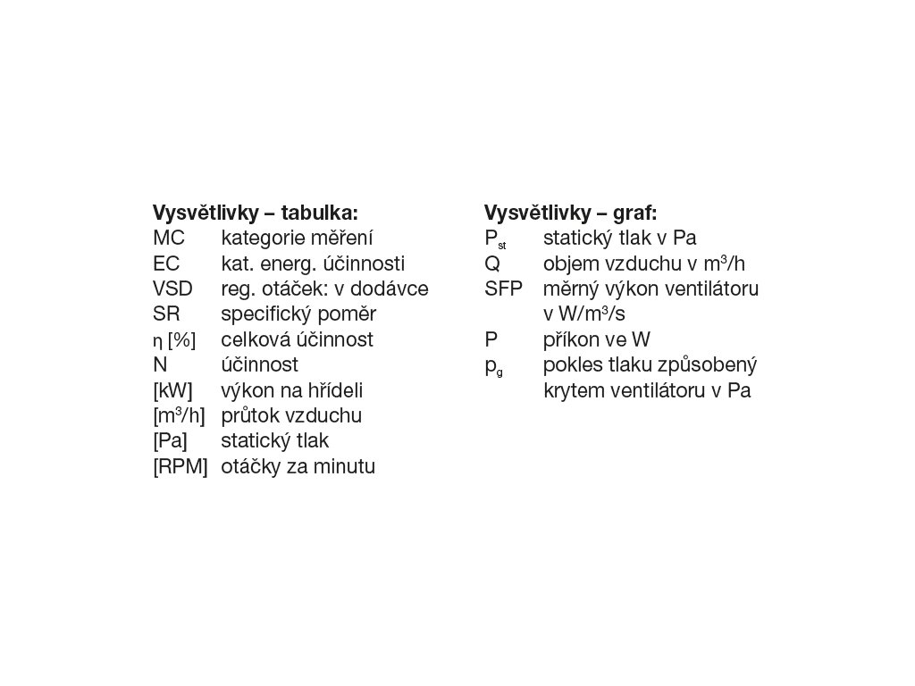 Hluk emitovaný ventilátorem je uveden v tabulkách, měření je prováděno ve vzdálenosti rovné trojnásobku průměru oběžného kola (minimálně však 1,5 m) na straně sání.