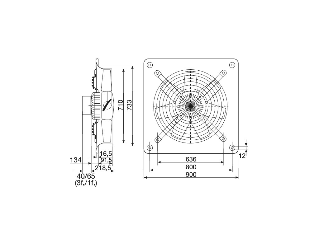 HCFT/4-710 H výkonný průmyslový třífázový nástěnný axiální ventilátor