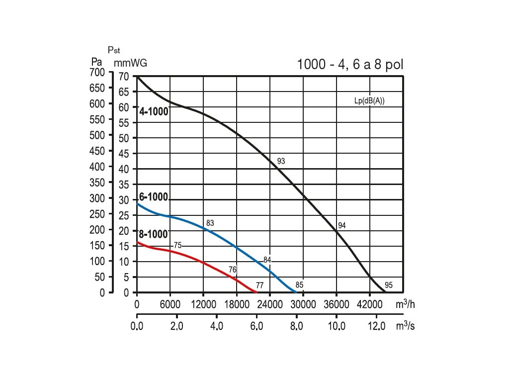 Hluk emitovaný ventilátorem je uveden v tabulkách jako hodnoty akustického tlaku ve vzdálenosti 1,5 m na straně sání a výtlaku. Pro získání hodnot akustického výkonu v oktávových pásmech je nutno k hodnotě akustického tlaku přičíst korekční faktor v dole uvedených tabulkách.
