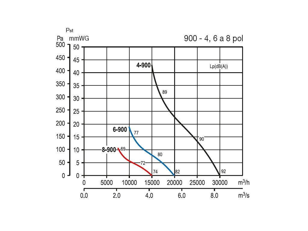 Hluk emitovaný ventilátorem je uveden v tabulkách jako hodnoty akustického tlaku ve vzdálenosti 1,5 m na straně sání a výtlaku. Pro získání hodnot akustického výkonu v oktávových pásmech je nutno k hodnotě akustického tlaku přičíst korekční faktor v dole uvedených tabulkách.